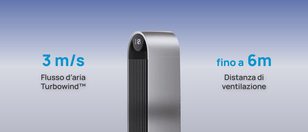 Flusso d'aria iperveloce, quando vuoi tu. Sperimenta un flusso d’aria potente fino a 8,8 m/s, capace di raggiungere ogni angolo della stanza fino a 12 metri di distanza